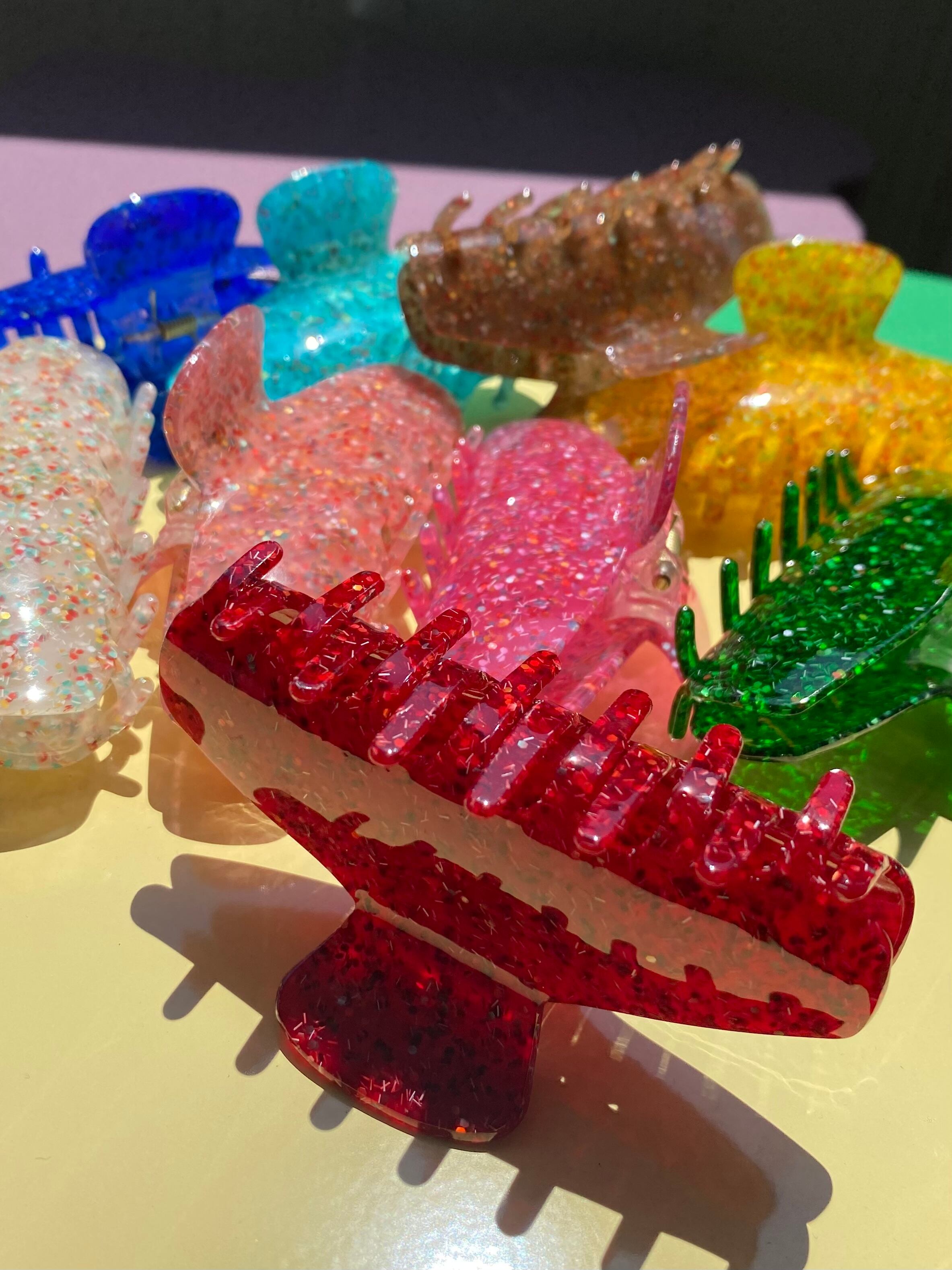カラー豊富なキラキラヘアクリップです。 素材:アクリル